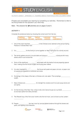کتاب شبکه استرالیا- دوره آمادگی آیلتس- (قسمت ۱۷- صحبت در مورد جشنواره‌ها و جشن‌ها)