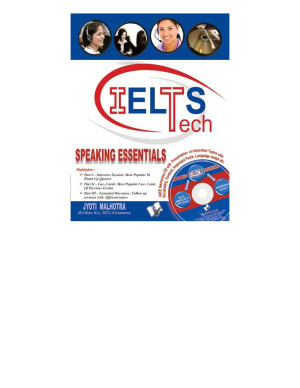 V&S Publishers, 2015 – 110 p.—ISBN 978-93-505743-5-5IELTS TECH – Speaking Essentials is the fifth and the last book in the IELTS-Tech Series and will effectively serve the purpose of both the Academic and General Candidate, particularly those appearing for the Interview Sessions to learn the technique of facing Interviews and Interacting with the Interviewee in the IELTS (The International English Language Testing System Examinations). It covers all the three vital aspects of Speaking Essentials as laid down in the IELTS Exams, i.e., Part- 1 Personal Interaction, Part – 2 Q – Cards and Part -3 Follow up Session.