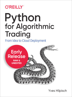 EARLY RELEASE: Has only first three chapters.The financial industry is adopting Python at an increasing rate. Top hedge funds use the language on a daily basis for quantitative research, data exploration, and analysis and for prototyping, testing, and executing trading strategies. There’s also a rise in trading activity by individuals and small groups of traders, including many from the technology world.This book is ideal for Python developers, tech-savvy discretionary traders, data analysts, and people who want to become Algo trading professionals or trade their own funds. Author Yves Hilpisch focuses on the practical application of programming to trading rather than theoretical computer science. If you’re looking for a guide to help you perform algorithmic, fully-automated trading, this book is for you.Set up a proper Python environment for algorithmic tradingLearn how to retrieve financial data from public and proprietary data sourcesExplore vectorization for financial analytics with NumPy and pandasMaster vectorized backtesting of different algorithmic trading strategiesGenerate market predictions by using machine learning and deep learningTackle real-time processing of streaming data with socket programming toolsImplement automated algorithmic trading strategies with the OANDA and FXCM trading platforms