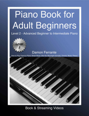 دانلود کتاب کتاب پیانو برای مبتدیان بزرگسالان: سطح 2 - مبتدی پیشرفته پیانو میانی - چگونه موسیقی نت پیانو معروف (مانند سوناتا مهتاب) ، آکورد ، تئوری موسیقی (کتاب و فیلم های پخش)