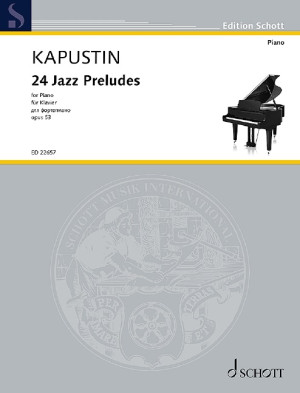 The 24 Jazz Preludes were markedly influenced by Chopin. At the same time, Kapustin added numerous varied jazz elements. The exuberant creativity displayed by Kapustin here has contributed to the great popularity of the pieces, which also shows in the large number of recordings.Difficulty:advancedISMN:979-0-001-16273-9Opus:op. 53Performance duration:42′ 0″Publisher:Schott MusicSeries:Edition SchottUPC:841886029101Year of composition:1988page number:108Delivery rights:worldwide
